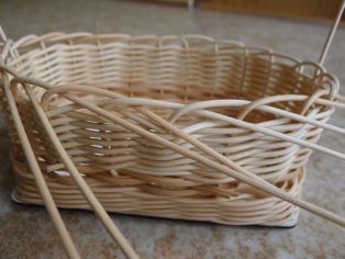 Oproti sebe vtlačíme šidlom dlhší prút, ktorým budeme vytvárať ozdobnú rúčku. V tejto rúčke neudržíme naplnený kôš darčekmi.