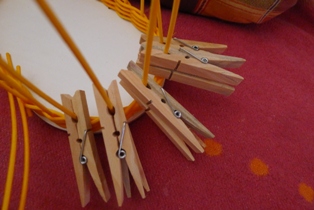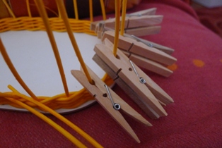 Mali sme už doma len oválnu podložku. Preto sme pomocou štipcov robili len otvory na koncoch.