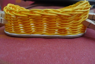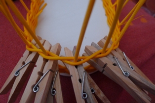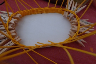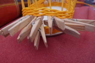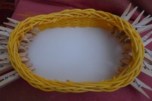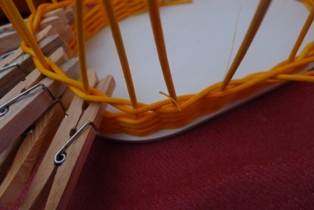 Pri pletení si musíme dávať pozor, aby sme dodržiavali tvar - obvod oválnej podložky, čo niekedy ide trochu ťažšie, keďže vo výhľade nám zavadzajú štipce.