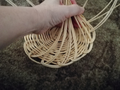 Vyhneme osnovné prúty smerom hore. Obpletať budeme dvomi dvojicami prútov ako pred dvomi týždňami.