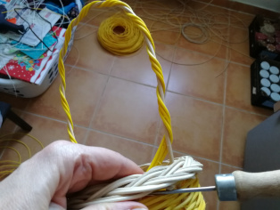 Pripravíme si pedig (ratan) hrúbky 2,5 mm. Prírodný a a žltý či zelený.