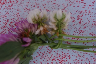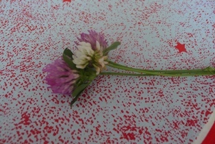 Potrebujeme: ďatelinu alebo púpavy, tenký špagátik (my sme použili zelenú pevnú bavlnu na pletenie)