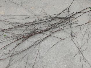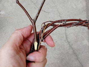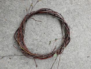 Odrezali sme z prevísajúcej brezy pár dlhých mladších konárov. Už dlhšie sme chceli skúsiť urobiť veniec ako sme videli dávnejšie v nejakom obchodíku s kvetinami. Teraz sme sa teda do toho pustili.