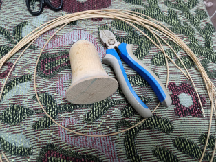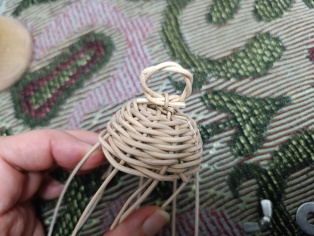 Upletieme 6 - 7 okruhov okolo zvončeka. Stiahneme z kopýtka. Upletieme aj druhú rovnakú časť. Akési dva košíčky.