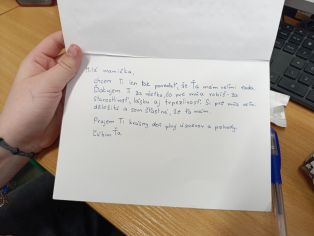 Stranu, kde sme vyšívali srdiečko, sme podlepili papierom, aby sme zakryli nite. Dovnútra sme napísali prianie. Už len vložiť do peknej obálky.
