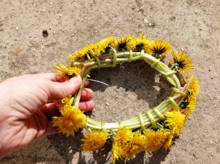 Dlhý pás stočíme do kruhu. Prekryjeme asi na 5 - 8 cm a zviažeme dlhšou trávou.