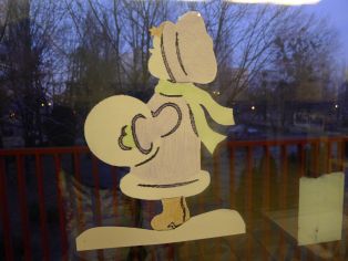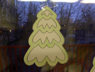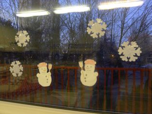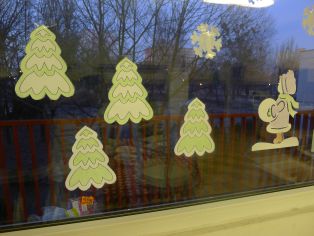 Aj minulý aj predminulý rok sme si vystrihovali na okná ozdoby z bieleho papiera. Trochu sme si dostrihali prsty, keď sme menšie časti vystrihovali s manikúrovými nožničkami. Tento rok sme to skúsili inak. Len sme obstrihli základné obrysy a zvyšok sme vymaľovali farbičkami.