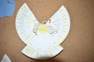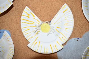 Vystrihneme z menších či väčších papierových tanierov a zlepíme. Pomôžeme si farebnými papiermi, nožničkami, lepidlom či bavlnkou. Môžeme zavesiť na dvere alebo zarámovať do obrazu.