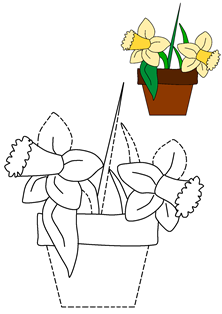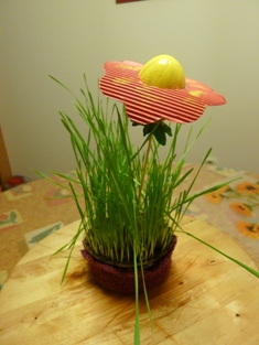 Vyfúknuté vajíčko si pomocou plastelíny prichytíme na špajlu. Vajíčko natrieme neriedenou temperovou farbou. Necháme zaschnúť. Potom navlečieme na vajíčko vystrihnutú kvetinku z vlnitej lepenky alebo z kartónu.