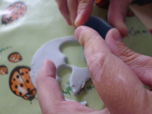 Do uležaného cesta ešte vmiešame asi 100 g múky, potom už môžeme vytvárať figúrky podľa vlastnej fantázie s pomocou malých nožničiek na nehty, noža, vykrajovátok, náplní do pera s otvoreným koncom a s veľa ďalšími ľahko dostupnými pomôckami.