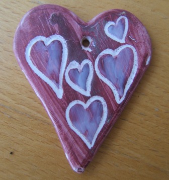 Vychladnuté potom dozdobujeme. Napríklad farbením akrylovou farbou alebo lepením trblietok epoxidovým lepidlom a prípadne lakovaním. Takto podobne sme kedysi ešte predtým urobili prívesok na Valentína.