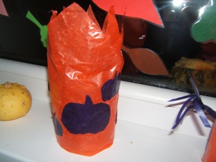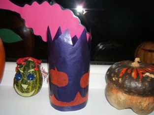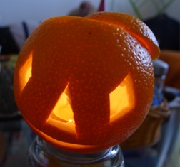 Najprv sme urobili malé svietníčky z pomarančov. Každý do vnútra vložil zapálenú sviečku, vyložili sme ich na balkón a vonkajšie schodište, aby sme osvetlili budovu. Z vydlabaných pomarančov sme urobili deťom pomarančové pudingy, ktoré sme nechali vychladnúť a zatiaľ sme tvorili iné jesenné dekorácie - z listov, ktoré vám ukážeme o týždeň. Pudingy sme potom zjedli na večeru.