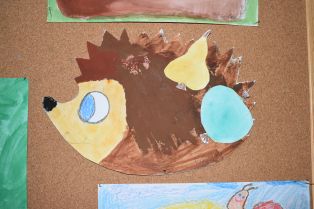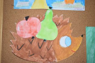 So škôlkármi môžeme tvoriť aj takto. Vystrihneme deťom ježkov a necháme ich deťom pomaľovať vodovkami. Podobne urobíme s jablkom a hruškou.