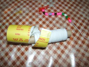 Nuž sme ich postupne vytriedili a začali vymýšľať aj iné ako medajle, podložky pod poháre, ozdoby na vianočný stromček... Doniesla som domov z eurového obchodu drôt a začali sme navliekať a formovať tvary.