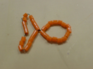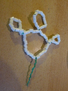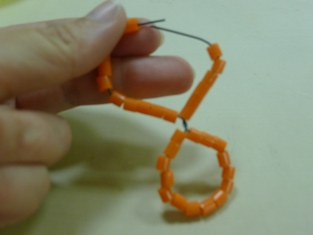 Na drôtik navlečieme korálky podľa návodu a stočíme do tvaru rybky. Nakoniec konce drôtu vtlačíme do protisebe stojacích korálok, aby sme zabránili ich vypadnutiu.