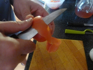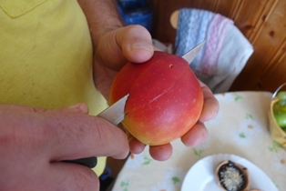 Vyrezávame malým nožíkom z veľkej mäsitej paradajky.
