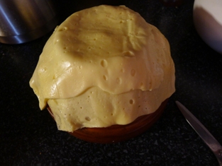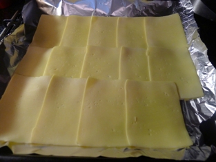 V rúre pri teplote asi 180 °C tri minúty prehrejeme poukladaný syr nakrájaný na nie príliš tenko - asi tak 3 - 5 mm. Potom ho vyberieme a prehneme cez misku. Necháme vychladnúť.