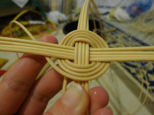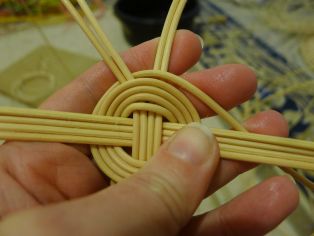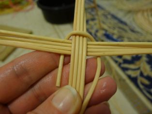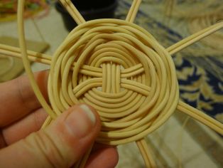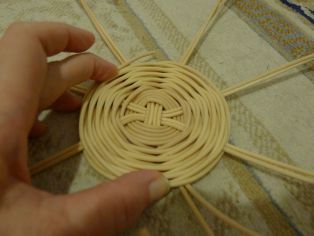 Na osnovu budeme potrebovať osem prútov rovnakej dĺžky. Odporúčame asi 40 cm. Prúty si rozdelíme na 4 + 4 a kolmo cez stred prehodíme cez seba, aby sme vytvorili kríž. Jedným dlhším prútom budeme obpletať osnovné prúty. Musíme si dávať pozor, aby sme dodržali v prvých štyroch okruhoch kolmosť osnovných prútov a zároveň nevychýlili ich z vodorovnej polohy.