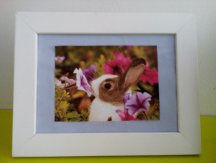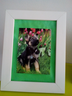 Na farebný papier nalepíme pekný obrázok vystrihnutý z časopisu a takto upravený obrázok vložíme do dreveného rámiku.
