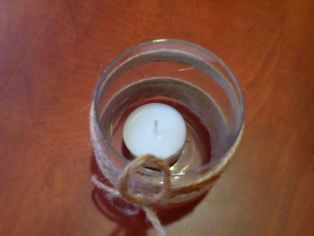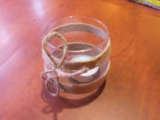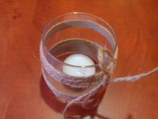 Sklenenú nádobku natrieme duvilaxom a oblepíme opatrne špagátikom. Môžeme prilepiť potom ozdôbky z papiera či umelej hmoty a dodekorovať vianočne alebo aj len tak. My sme chceli len taký jednoduchý svietnik, aby sa dla použiť celý rok.