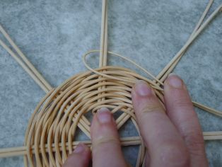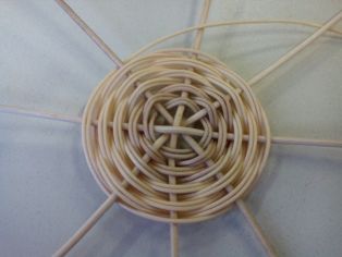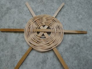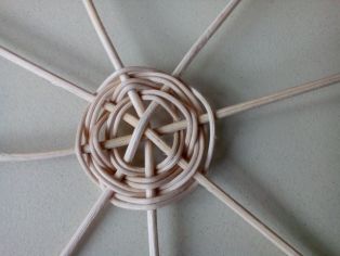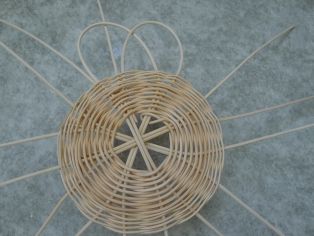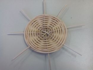 Osem dlhších hrubších mokrých prútov si položíme na seba do tvaru hviezdy. Jeden dlhý mokrý prút polovičnej hrúbky omotávame okolo. Pričom vždy dva okruhy rovnako. V nepárnom vždy posunieme pletenie o jeden ďalej, aby pletenie dostalo pevnejší tvar.