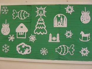 Potrebujeme biele papiere, na ktoré si tenkou ceruzkou nakreslíme obrázky a potom vystrihneme a začistíme tak, aby nezostalo vidieť ceruzku - alebo pozorne vystrihneme alebo vygumujeme. Ako napríklad tieto naše.