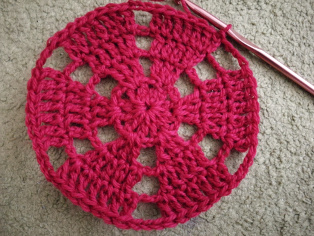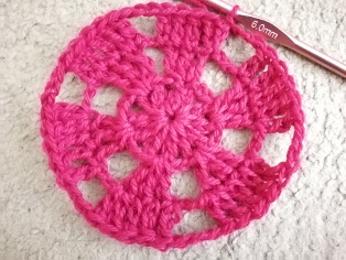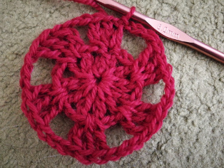 V prvom okruhu urobíme v magickom oku 2 dlhé dtĺpiky a 2 retiazkové očká, ktoré na konci stiahneme pevným okom do kruhu. Hneď vytiahneme 3 retiazkové očká a otočíme háčkovanie pre háčkovanie druhého okruhu v protismere prvého. Otáčanie je dôležité - menej sa háčkovanie vlní.