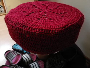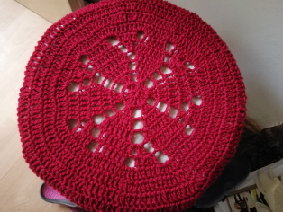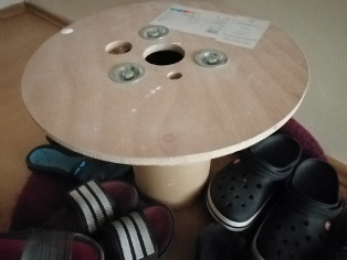 Po oprave elektriny nám zostali takéto drevené obrie špulky. Vyrežeme na ne molitan alebo ušijeme okrúhly vankúš, ktorý prekryjeme háčkovanou vzorkou.