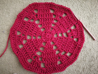 A teraz už háčkujeme len dlhé stĺpiky bez pridávania, čím sa háčkovaný kruh začne vlniť a stáčať do tvaru valca. Urobíme niekoľko okruhov dlhými stĺpikmi. Posledné dva urobíme krátkymi, aby sme upevnili háčkovanie a prevlečenie cez tabuderku.