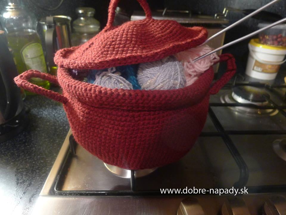 Odporúčame tento vtipný darček k jej sviatku. Háčkovaný hrniec na zbytky bavlniek.
