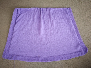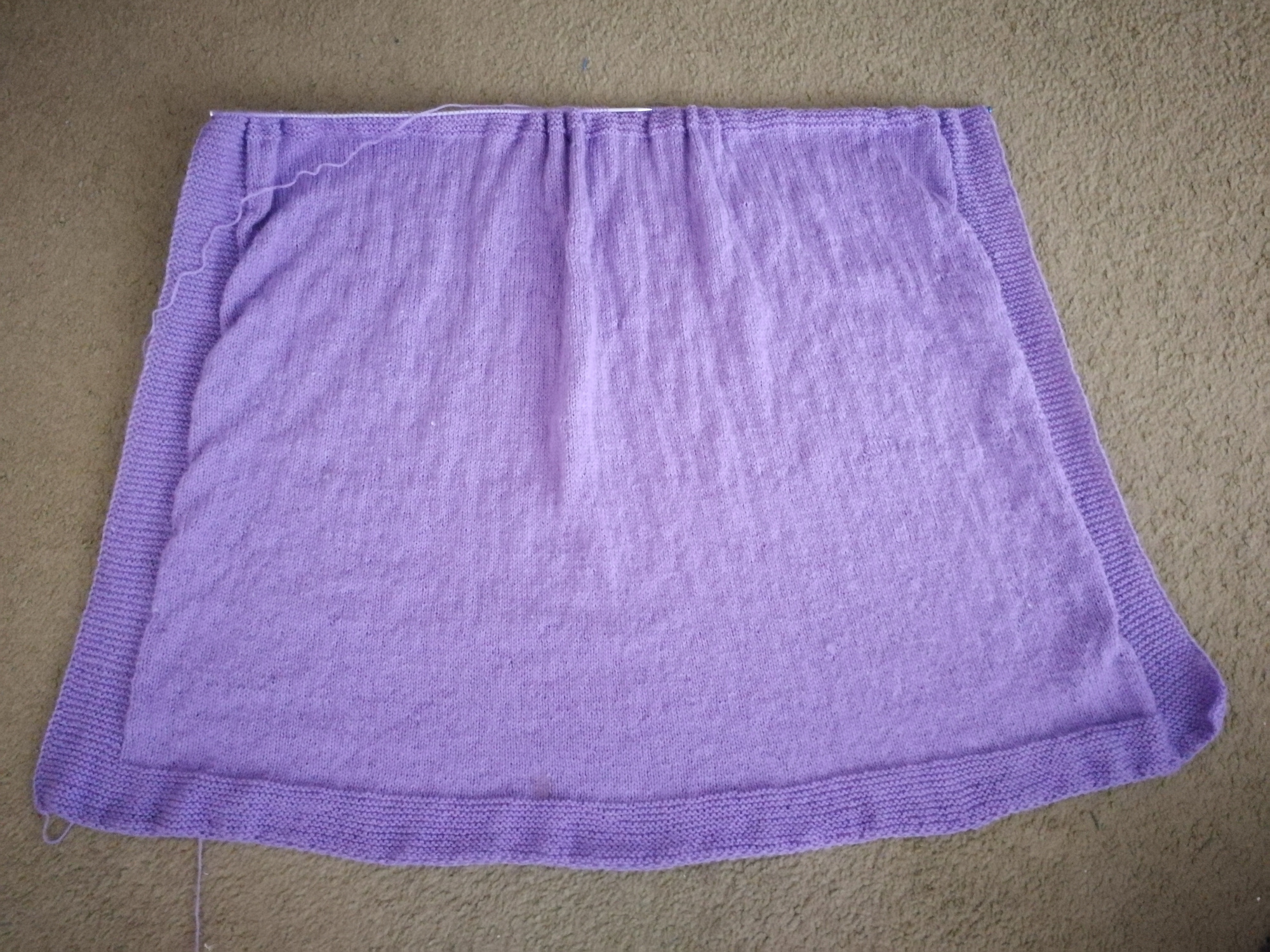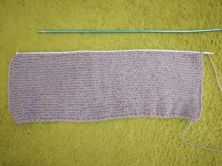 Na ihlicu si nahodíme 110 očiek. Prvých 14 radov pletieme len obrátene. Potom pletieme prvých a posledných 14 očiek v každom riadku obrátene. V strede pletieme lícovým žerzejom. Predná strana hladku, rubová obrátene. Ukončíme pletenie zase 14-mi radmi pletenými obrátene.