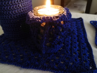 Potom spolu háčkujeme malé dečky, obháčkovávame plechovky na čaj a drobné sklenené svietniky. Krása.