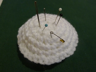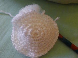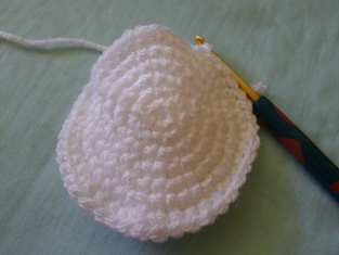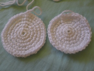 Uháčkujeme si dva rovnaké kruhy krátkymi stĺpikmi, ktoré zháčkujme krátkymi stĺpikmi a naplníme vankúšovou hmotou.