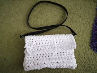 V nasledujúcom okruhu prvú polovicu uháčkujeme pevnými očkami. Potom pokračujeme krátkymi stĺpikm. Začíname háčkovať poklop na kabelke, ktorým ju budeme neskôr zakrývať. Háčkujeme otáčaním v každom rade. Ukáčkujeme 8 - 9 riadkov. Nakoniec ukončíme radom pevných očiek.