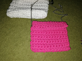 Uháčkujeme si retiazku zo 14 očiek. Urobíme heden rad krátkych stĺpikov. Potom obháčkujeme jedným okruhom krátkych stĺpikov. V rožnom očku urobíme dve očká. Urobili sme si dno kabelky. V nasledujúcom okruhu háčkovanie otočíme a urobíme okruh z reliefných stĺpikov, čím dosiahneme, že sa kabelka začne háčkovať kolmo na dno. Uháčkujeme 8 okruhov krátkymi stĺpikmi, pričom v každom okruhu otáčame háčkovanie.