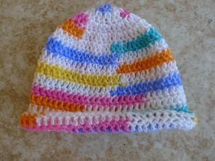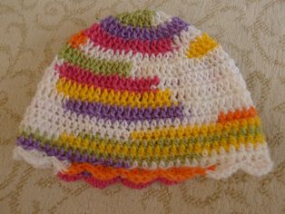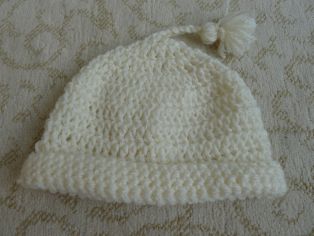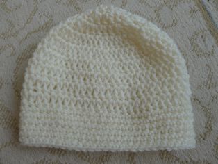 Alebo biela detská háčkovaná čiapka na asi 2 roky.