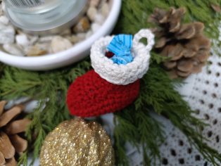 Tentokrát sme sa vrhli na modernejšiu ozdobu. Ozdobu v tvare santovej topánky či papuče. Pokračujeme v míňaní zánovných bavlniek.