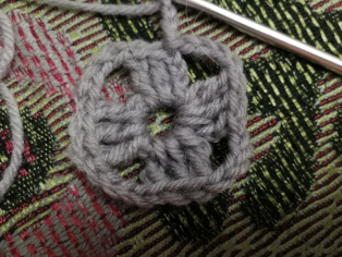 Urobíme 3 retiazkové očká, aby sme sa dostali na úroveň výšky dlhého stĺpika. Následne urobíme v otvore, ktorý vytvorili retiazkové očká v predošlom okruhu, 2 dlhé stĺpiky, potom 4 retiazkové očká a pokračujeme 3-mi dlhými stĺpikmi v otvore. Pokračujeme 2-mi retiazkovými očkami a v otvore z dvoch retiazkových očiek v predošlom okruhu urobíme 3 retiazkové očká. Následne zase ponad stĺpiky v predošlom okruhu urobíme 2 retiazkové očká. Pokračujeme v otvore zo 4-roch retiazkových očiek a ďalej ... Okruh uzavrieme pevným okom.
