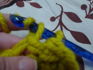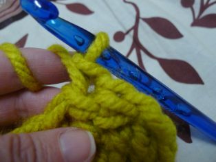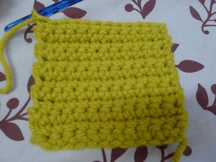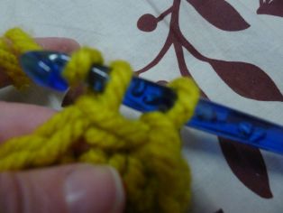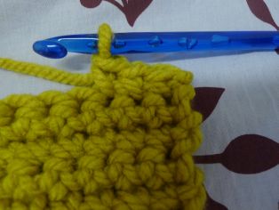 Nad retiazkou z 10 očiek urobíme 12 radov krátkych stĺpikov. Odporúčam na konci každého riadku urobiť jedno retiazkové očko, potom háčkovanie otočiť a hneď háčkovať. AK nahadzujete očko na konci riadku a otáčate, lepšie drží pri háčkovaní okraj tvar a aj sa lepšie obháčkováva okraj.