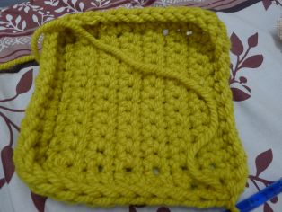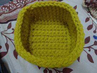 Potom obháčkujeme krátkymi stĺpikmi celý štvorec, pričom v rožných očkách urobíme vždy dva stĺpiky. Ďalší rad urobíme reliéfny stĺpik. Takto dosiahneme krajší tvar, ktorý nám zvýrazní štvorcový pôdorys košíka.