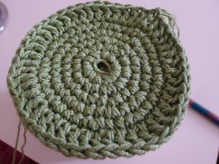 Začíname retiazkou zo 4 očiek, ktorú pevným okom stiahneme do kruhu. Do takto pripraveného kruhu si urobíme 12 krátkych stĺpikov. Potom robíme okruhy.
