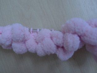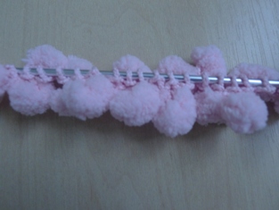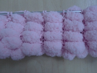 Nahodíme si na ihlicu 44 očiek tak, aby medzi každými dvomi „bombulami“ sme urobili dve očká. Potom z každej strany pletieme tak, že medzi dvomi „bombulami“ urobíme dve hladké očká. Tým pádom sa nám „bombuľky“ ukladajú pekne nad seba. Pozor, aj okrajové očká však pletiete hladko.