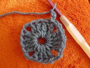 Začíname na retiazke zo 6 očiek, ktorú stiahneme do kruhu pevným okom.