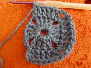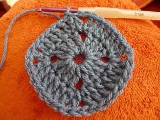 Jednoduchý modrobiely model háčkovaný na veľkom háčiku.