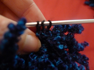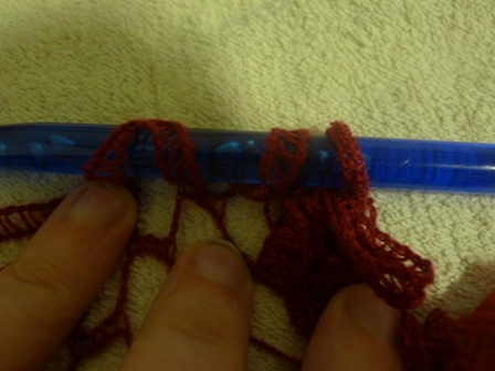 Naberieme si na háčik 4 očká tak (akoby sme išli pliesť), že naberáme každé druhé zvrchu smerom dole. Rovnako naberieme aj piate, ale to pretiahneme cez predošlé 4 a tak získame len jedno očko na háčiku. Teraz zase naberiem 4 očká a to posledné pretiahneme cez predošlé 4 tak, aby sme dostali len jedno očko na háčik.