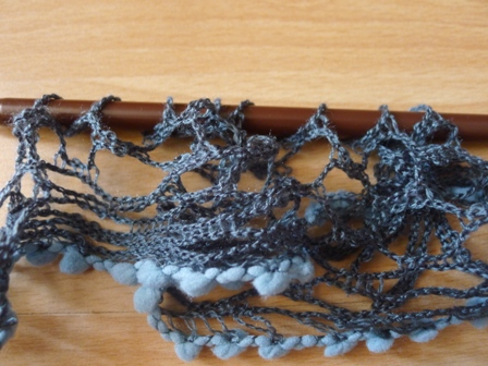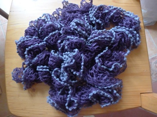 Po dlhšej dobe sme zase boli v obchode s vlnami. Mali tam nový výber netradičných vĺn, čo sme používali ešte v lete 2011 na upletenie šálu. Niekoľko sme z nich kúpili a znova plietli, ibaže trochu inak. Ako?