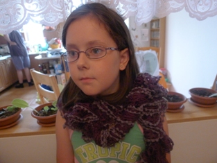 Na ihliciach č. 6 som si nahodila 18 očiek a plietla zopár sto radov obrátenými očkami. Z dvoch klbiek vyšiel dcére nádherne dlhý šál, ktorý sa jej hodí do jesennej bundy.