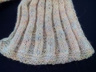 Na ihlicu si nahodíme 30 očiek. Pletieme vzor ako na pánskom šále. Zošijeme a môžeme prehnúť, aby sme vytvorili dojem roláka.