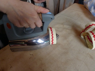 Prešijeme ozdobnou stužkou a celé zošijeme do krúžku a zažehlíme.