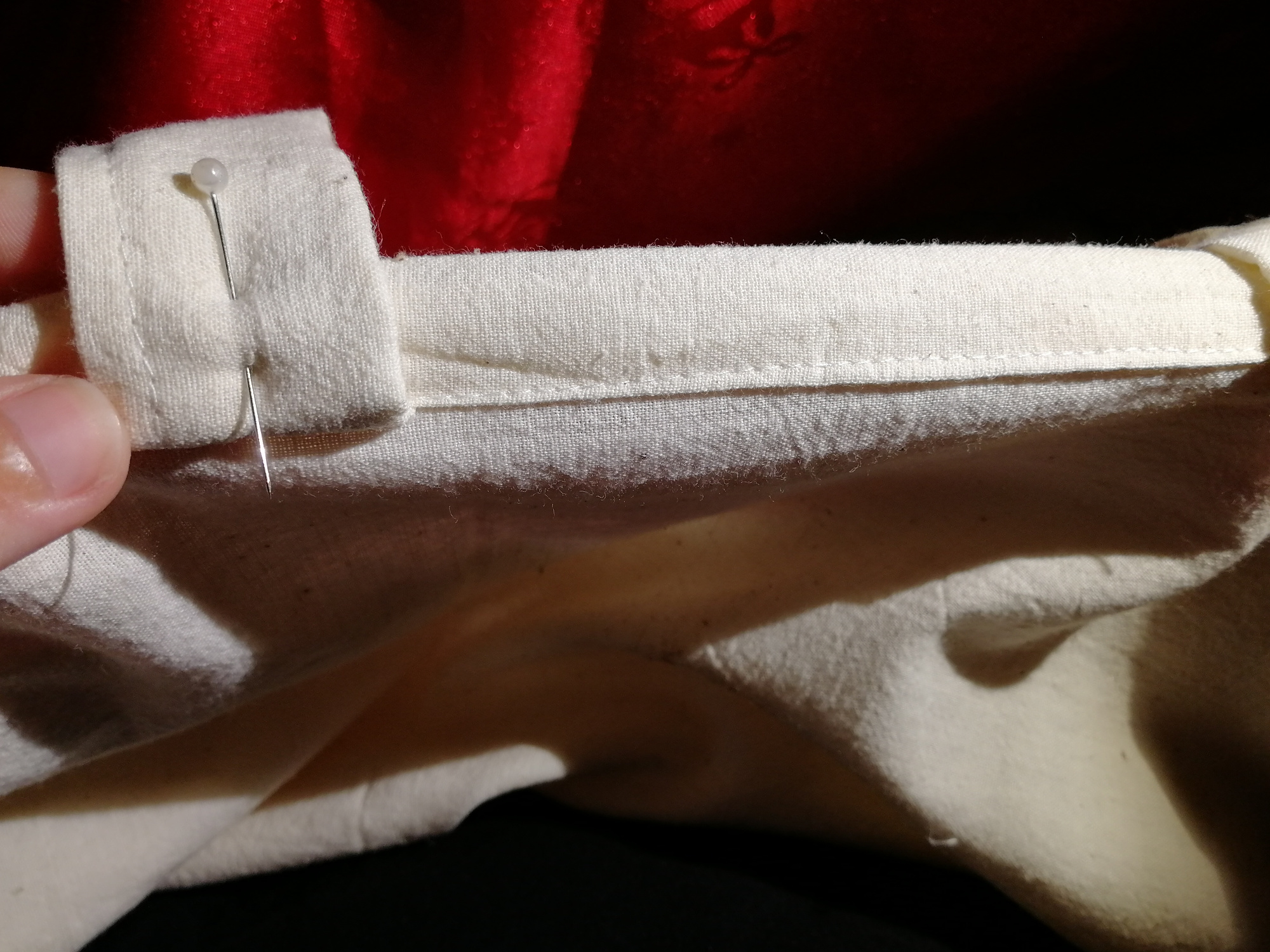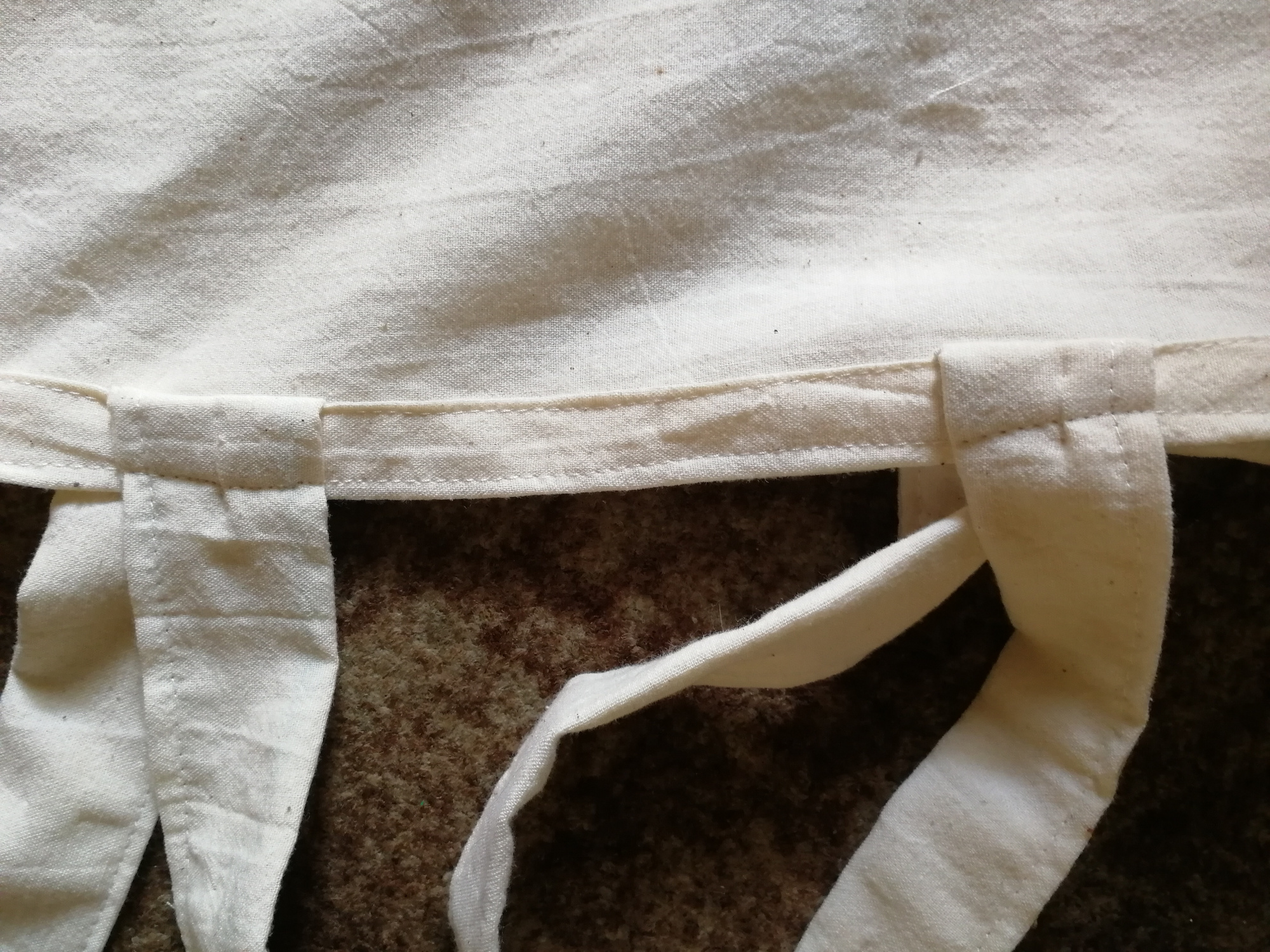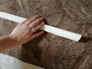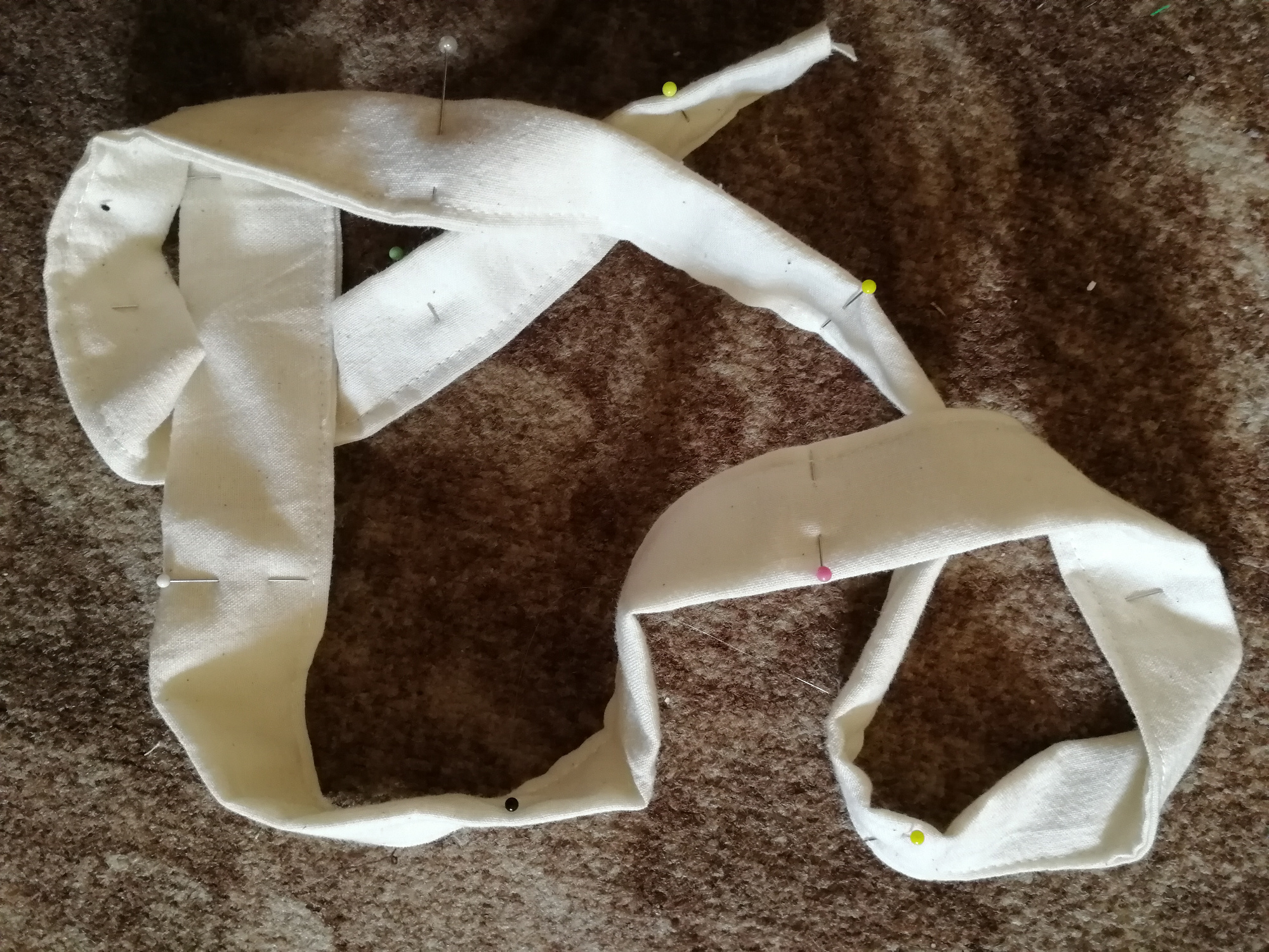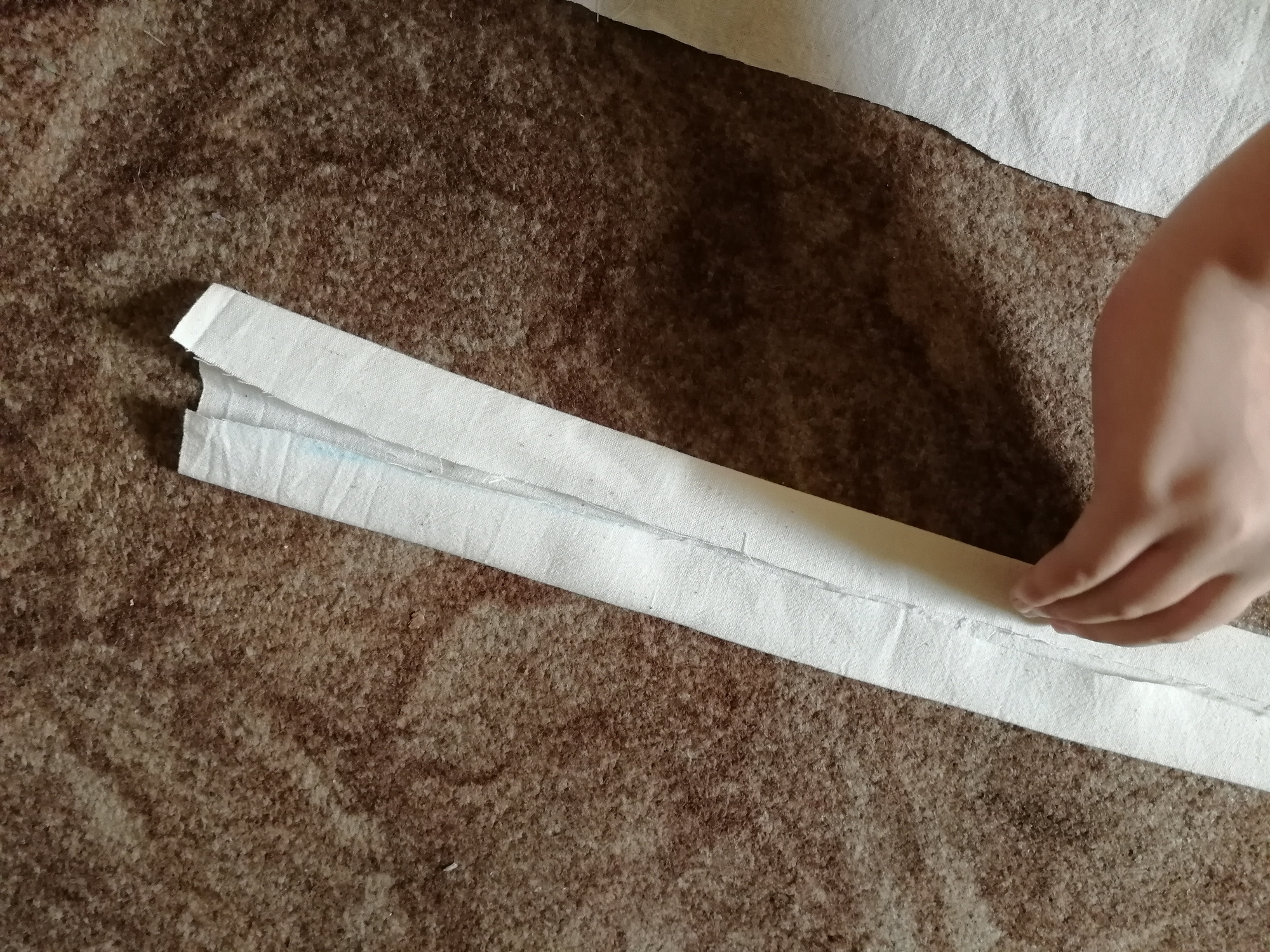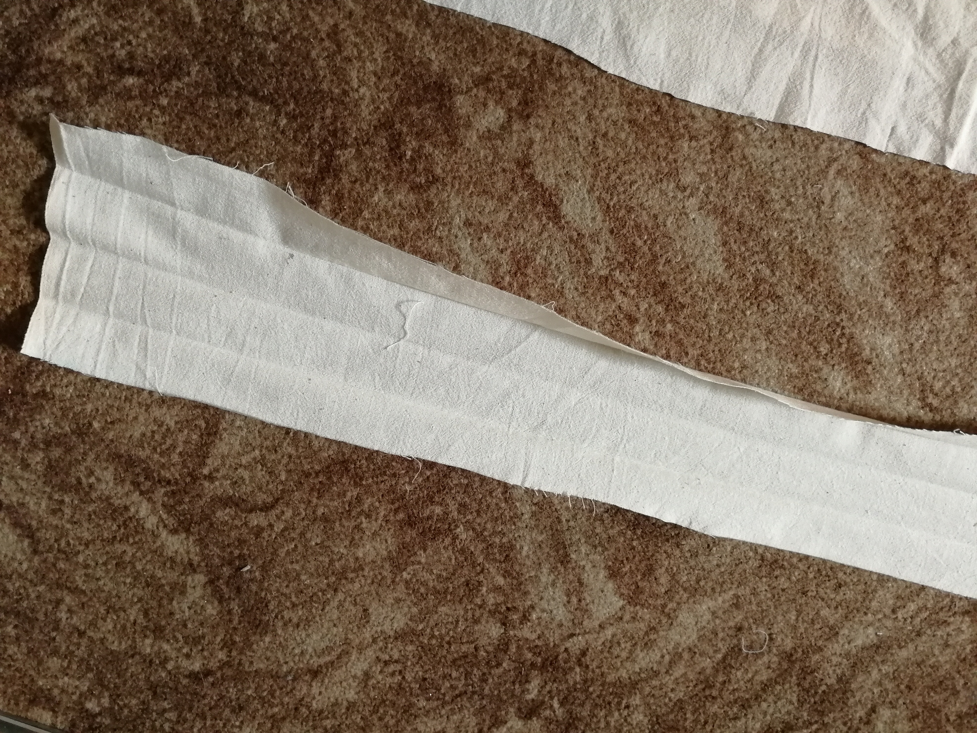 Vystrihneme si dva pásy široké 70 cm a široké 10 cm. Prehneme podľa osi kratšej strany a zažehlíme. Prešijeme.
